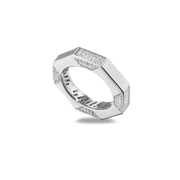 Anello ottagonale in argento placcato in oro bianco 18 ct con zirconi bianchi, misura 14