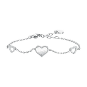 Bracciale Donna in acciaio ipoallergenico con cuori con zirconi cubici. Lunghezza: 16 + 3 cm. Misura cuore grande: 10 x 9 mm. BK2729