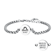 Bracciale uomo in acciaio con piastra con smalto nero Segno zodiacale “Bilancia”. Lunghezza: 19 + 3 cm. Diametro piastra: 15 mm. BA1628