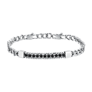 Bracciale Uomo in acciaio ipoallergenico con elemento centrale con cristalli neri. Lunghezza: 21,5 cm. Larghezza maglia: 6 mm. BA1672