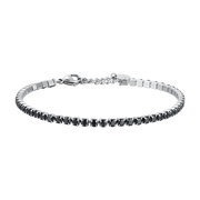 Bracciale tennis in acciaio ipoallergenico con cristalli neri. Lunghezza: 18 + 3 cm. Diametro cristalli: 3 mm . BA1363