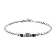 Bracciale Uomo in acciaio ipoallergenico con agata nera ed elementi in acciaio. Lunghezza: 19 + 3 cm. BA1702