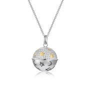 Collana Chiama Angeli in argento 925 con zirconi bianchi e inserti in argento dorato. Lunghezza catenina 90 cm e diametro sfera 1,8 mm.