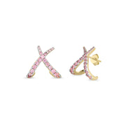 Orecchini incrocio in argento 925 placcato in oro 18kt con zirconi rosa. OR0251GRS