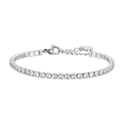 Bracciale Tennis in acciaio con cristalli bianchi. Lunghezza: 15 + 3 cm. Diametro cristalli: 3 mm . Bk2270